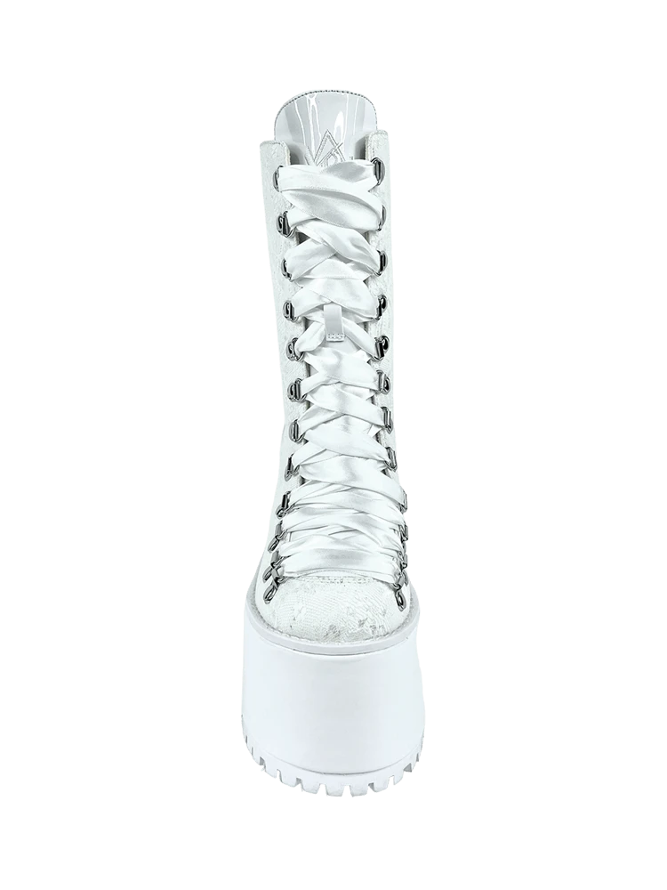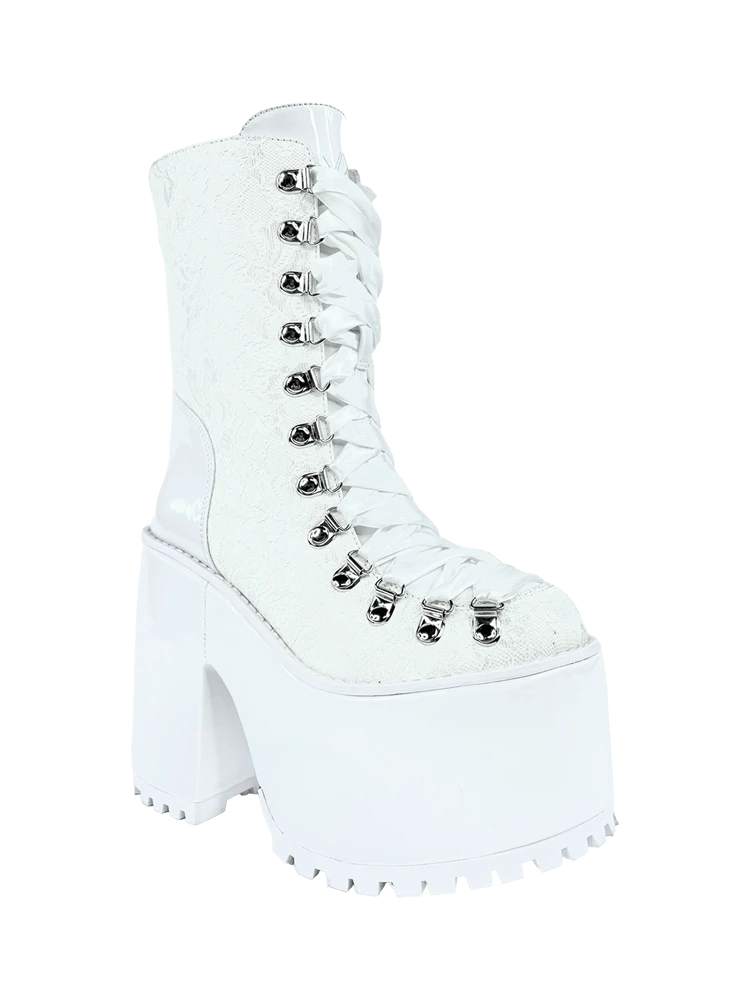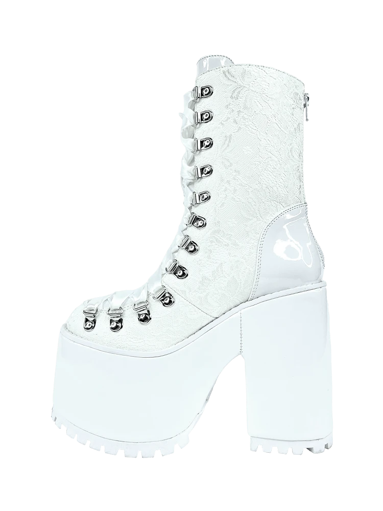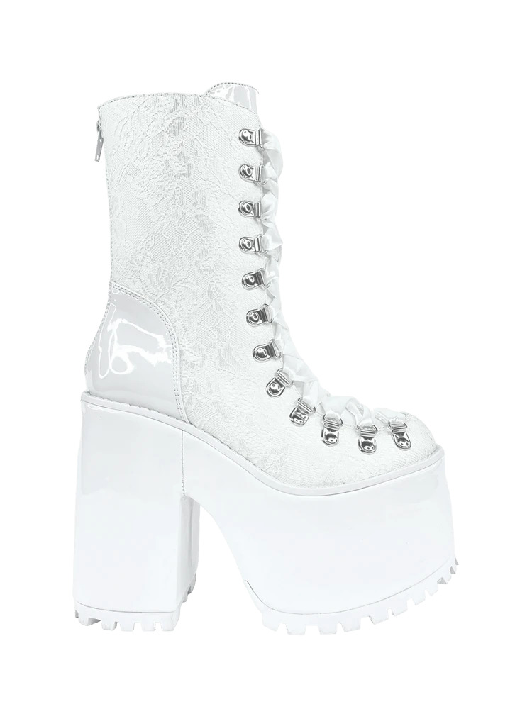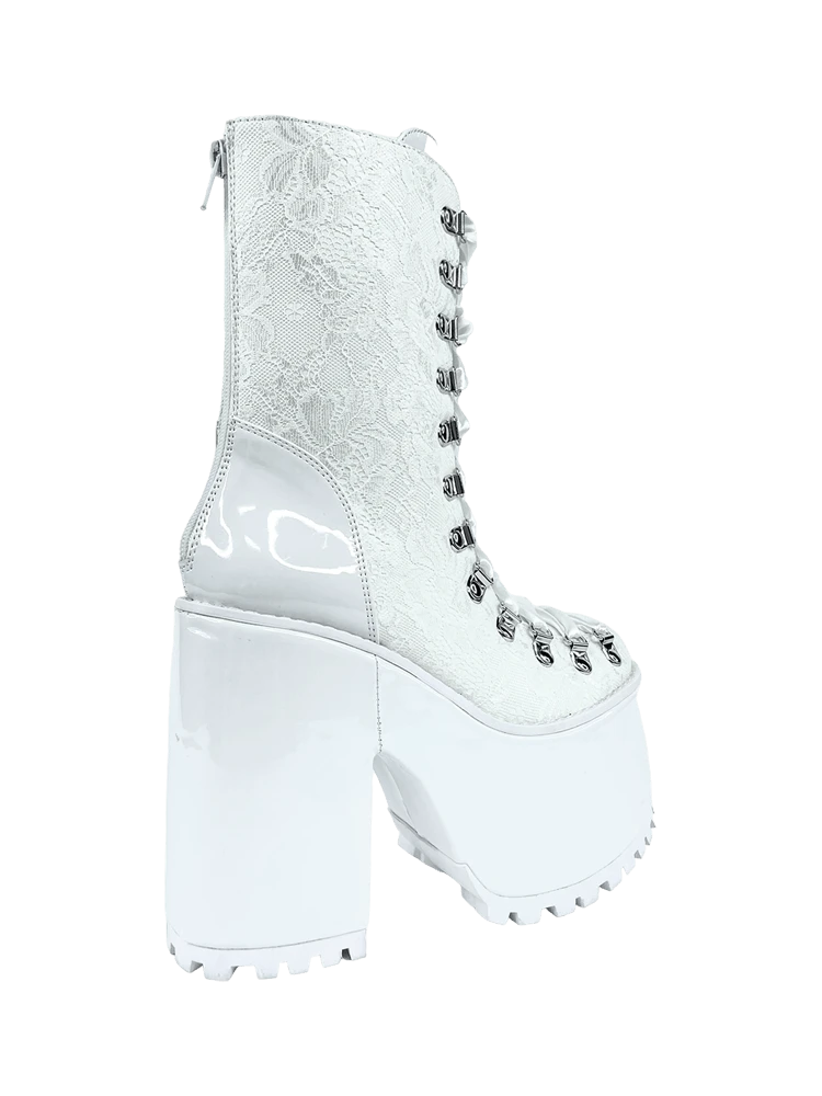 White vegan leather and lace upper