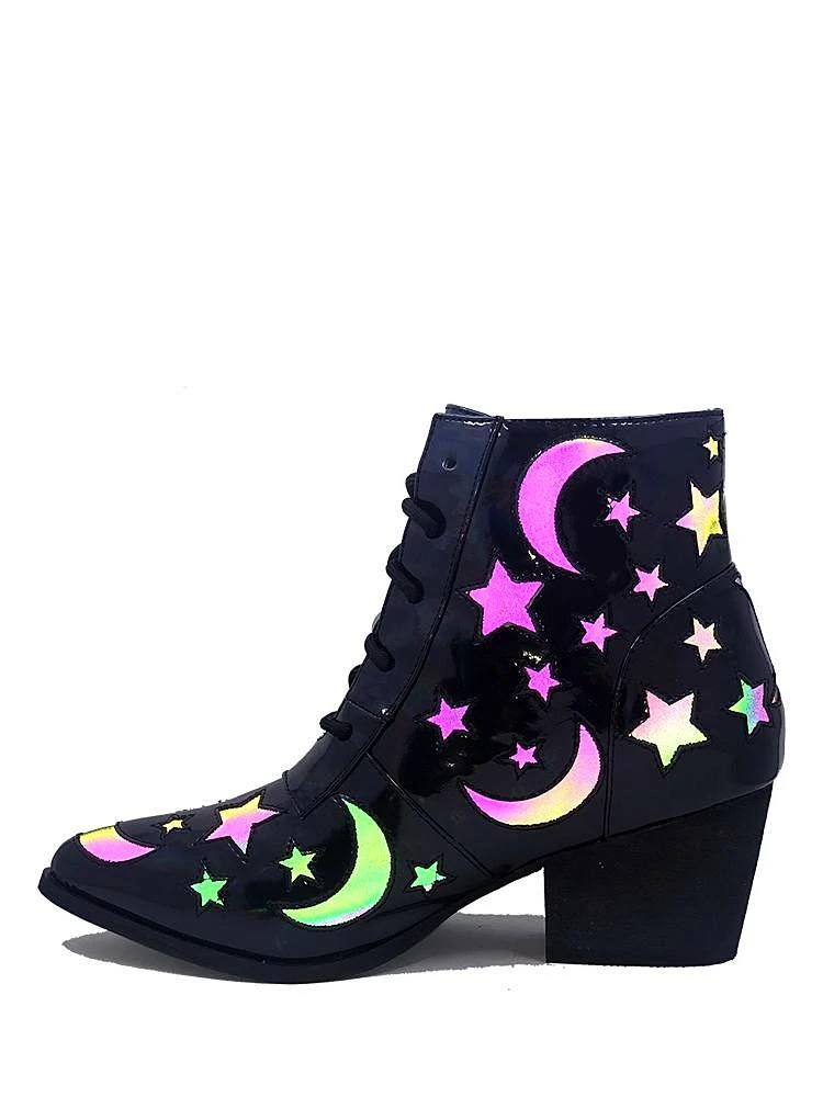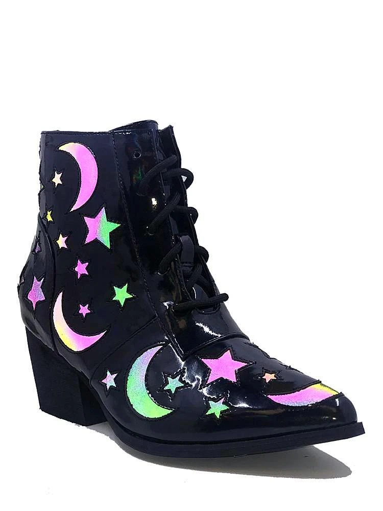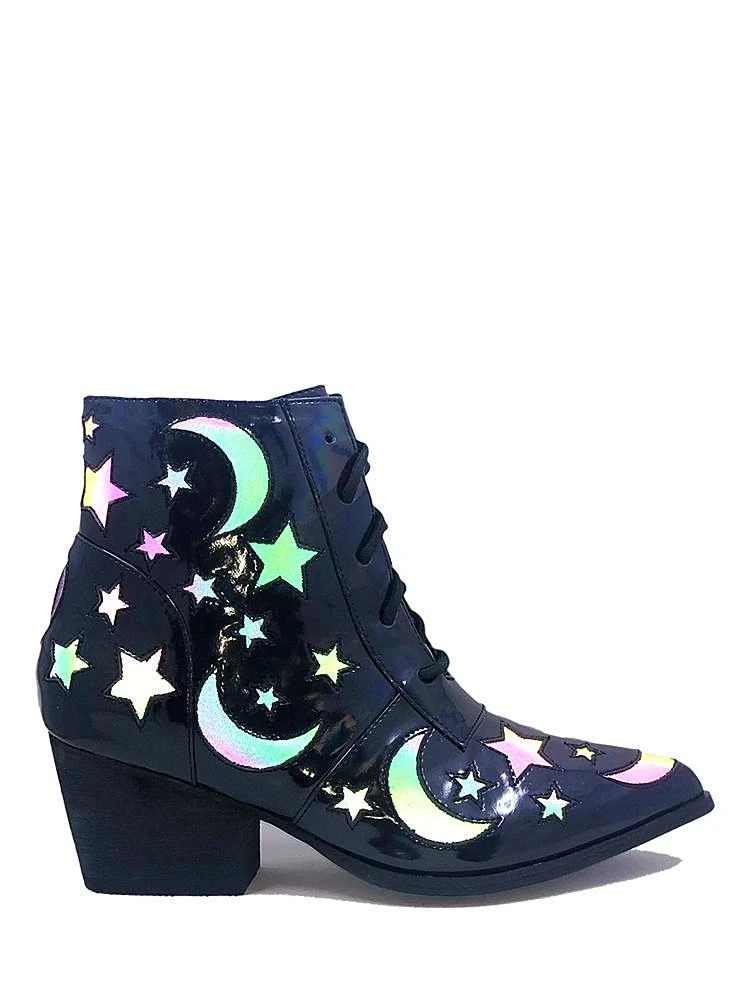 You’ll walk with the moons and the stars, aligning the elements with a powerful reflection from these bewitching booties in the AURA collection.