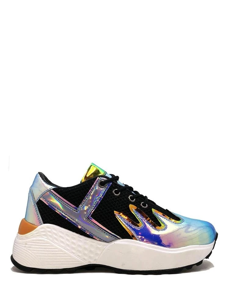 - PU faux-leather upper with glitter mesh detail and PU hologram flame details