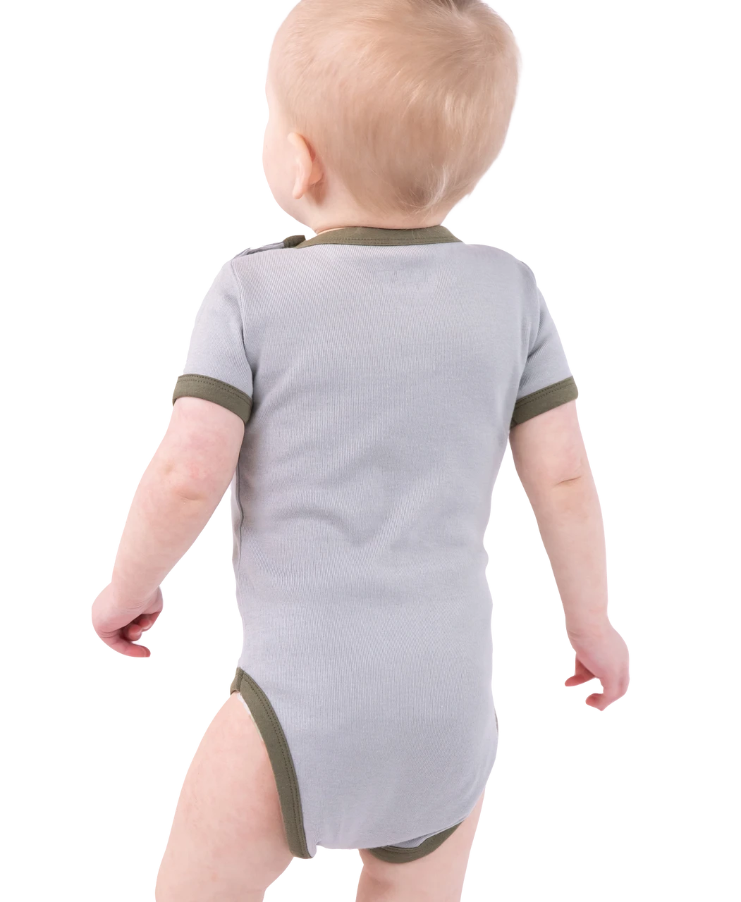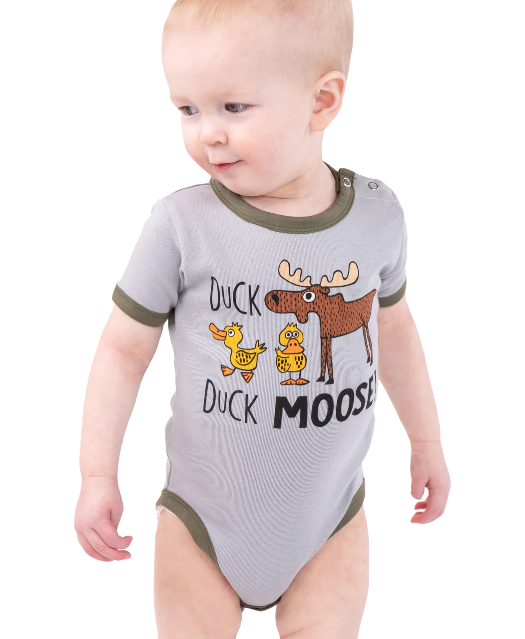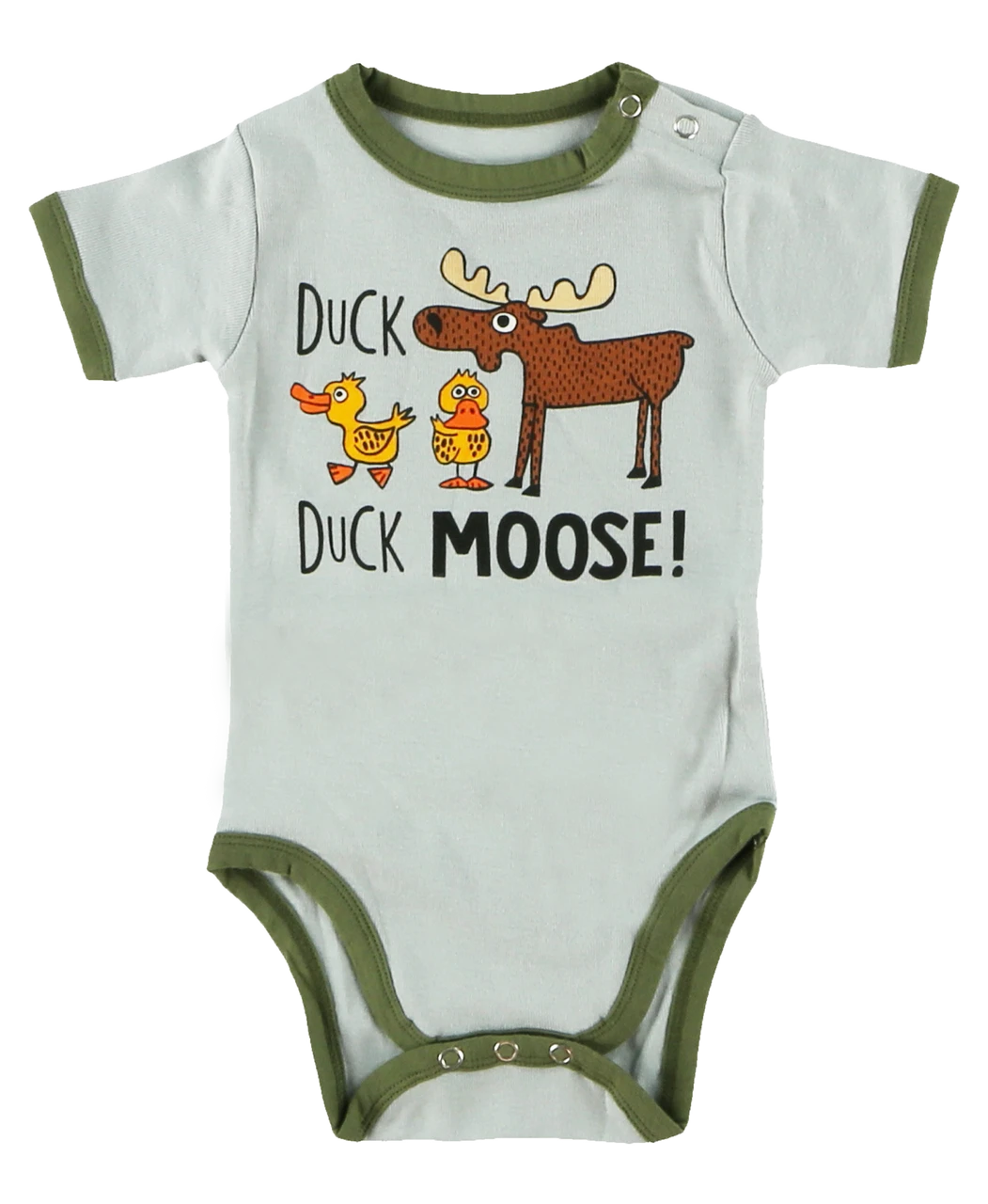 Our Duck Duck Moose Grey Infant Onesie brings a fun refresh to one of our most classic designs. It also brings all the comfort your little one will need to be able to have fun crawling or walking around. Our Onsies Creepers are made from ribbed cotton for stretch, your child will have lots of room to move around! With snaps at the crotch and shoulder for easy changes!