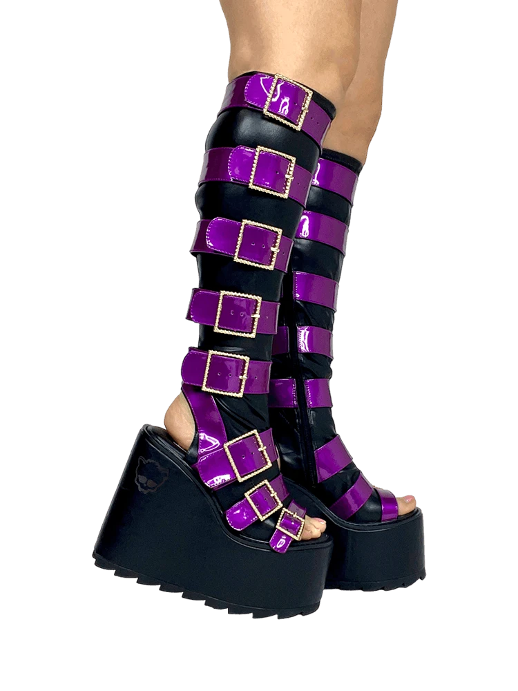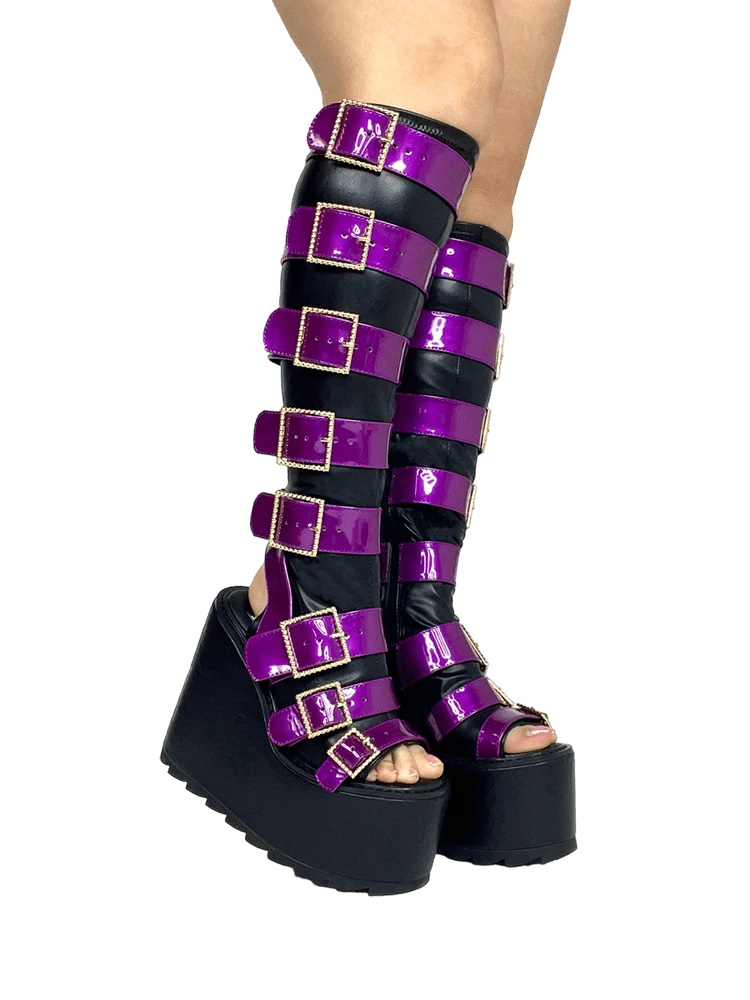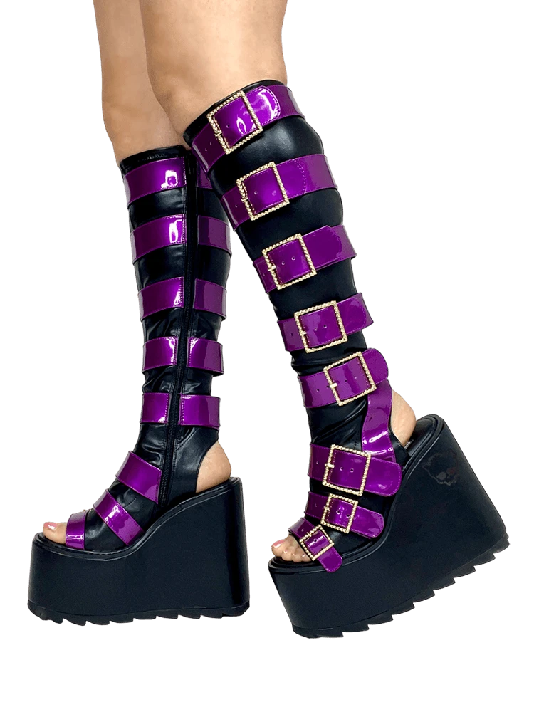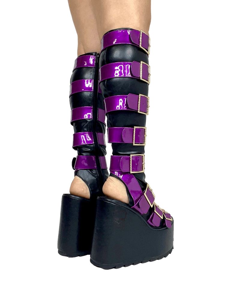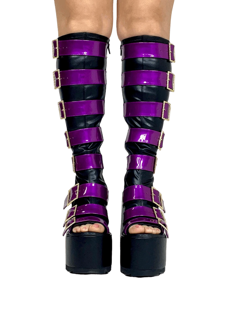 Purple metallic vegan patent leather straps