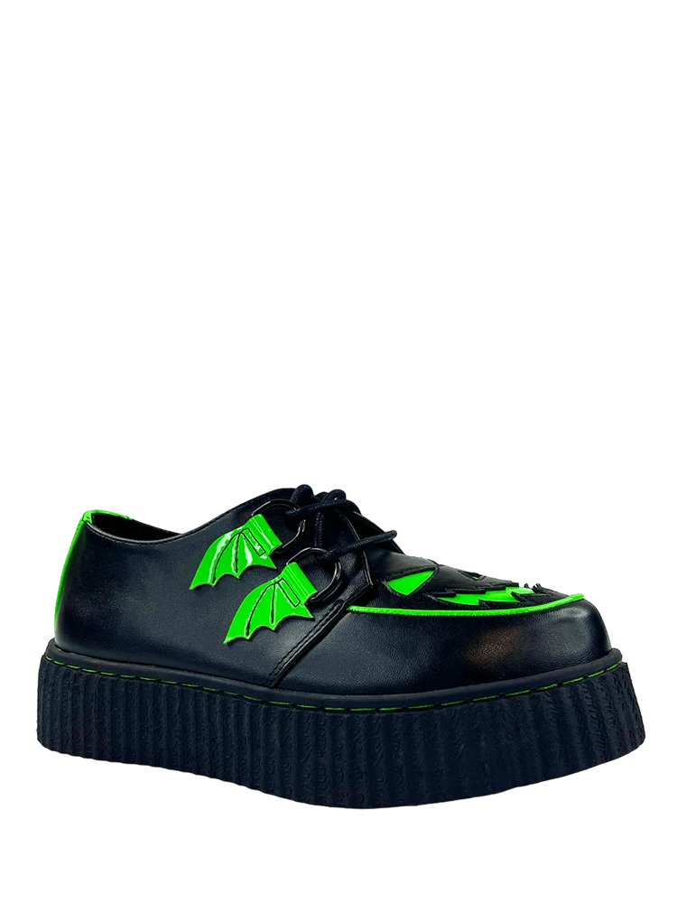 Neon Green vegan patent leather details