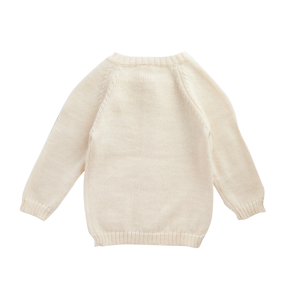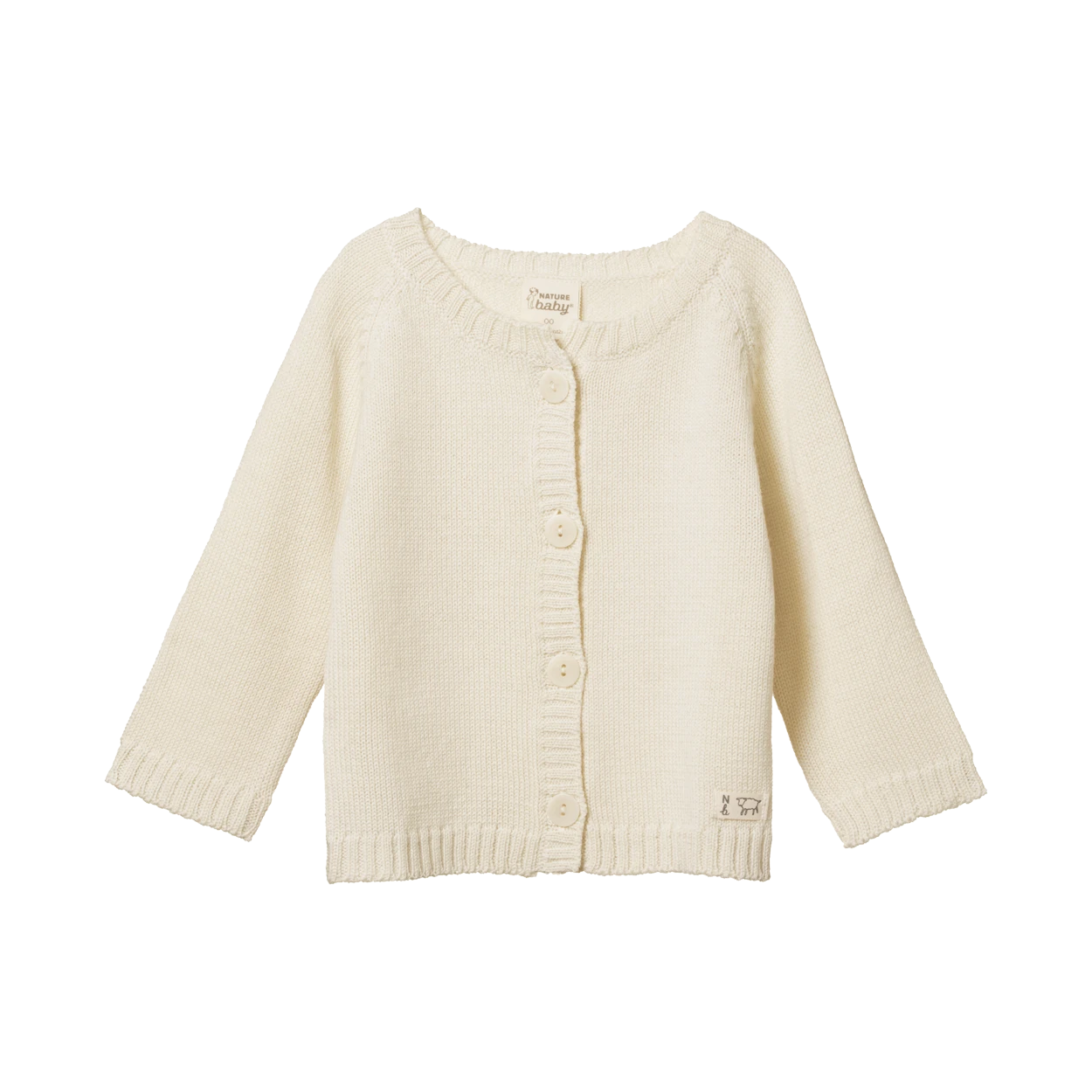 A timeless unisex merino wool knitted cardigan. Knitted in classic stocking stitch with a fine knit rib binding around the neck, raglan sleeve and a button down front closure to allow for easy dressing. A practical baby item that will match everything. The perfect piece to carry with you throughout the seasons.