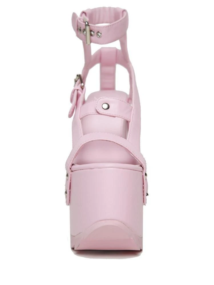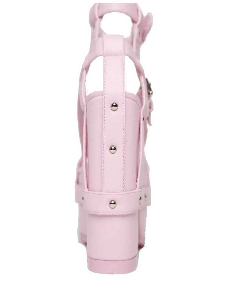 - Pink vegan leather wrap 2 1/4″ platform and 6 1/2″ heel.