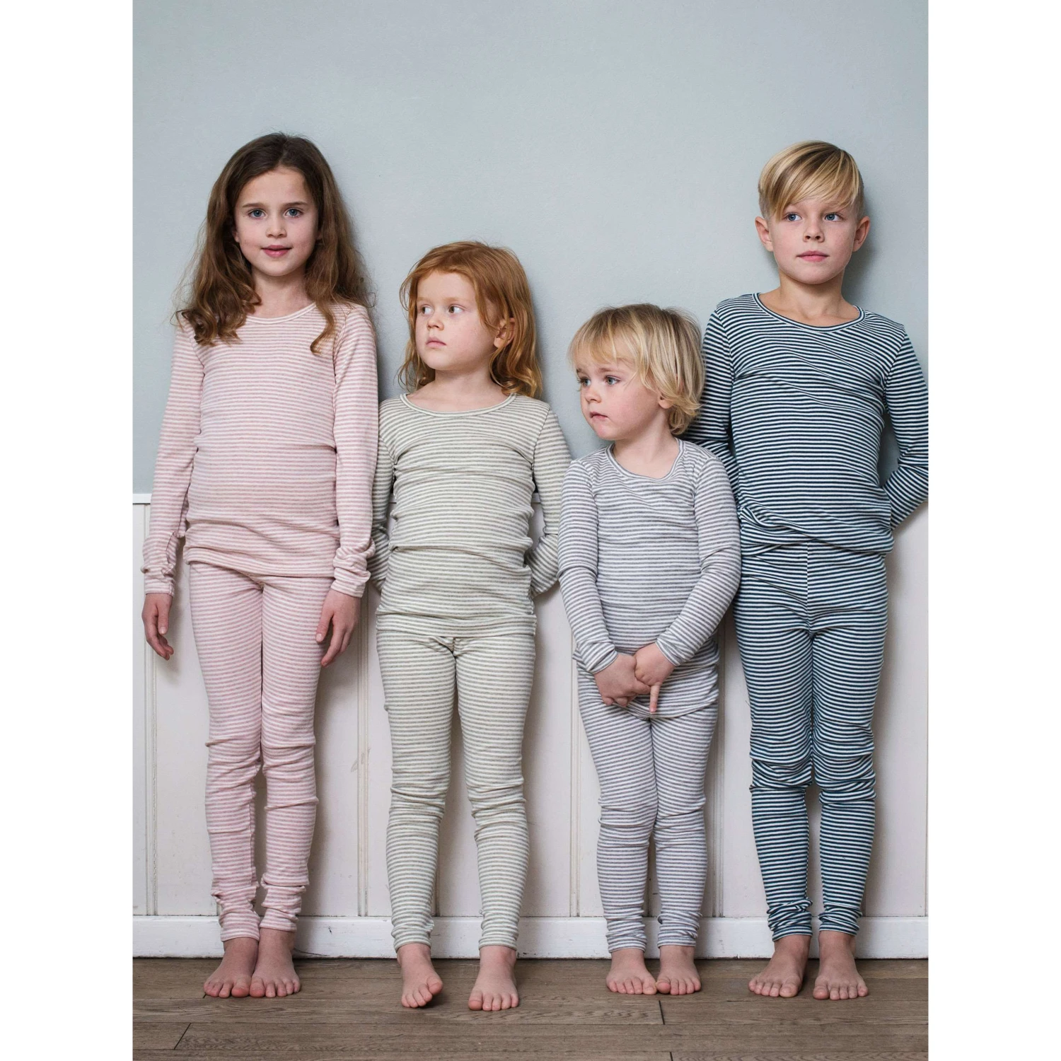 Super soft organic cotton leggings in a unisex atlantic blue and off white stripe. These leggings are perfect for wearing alone, layering or sleeping in.