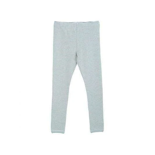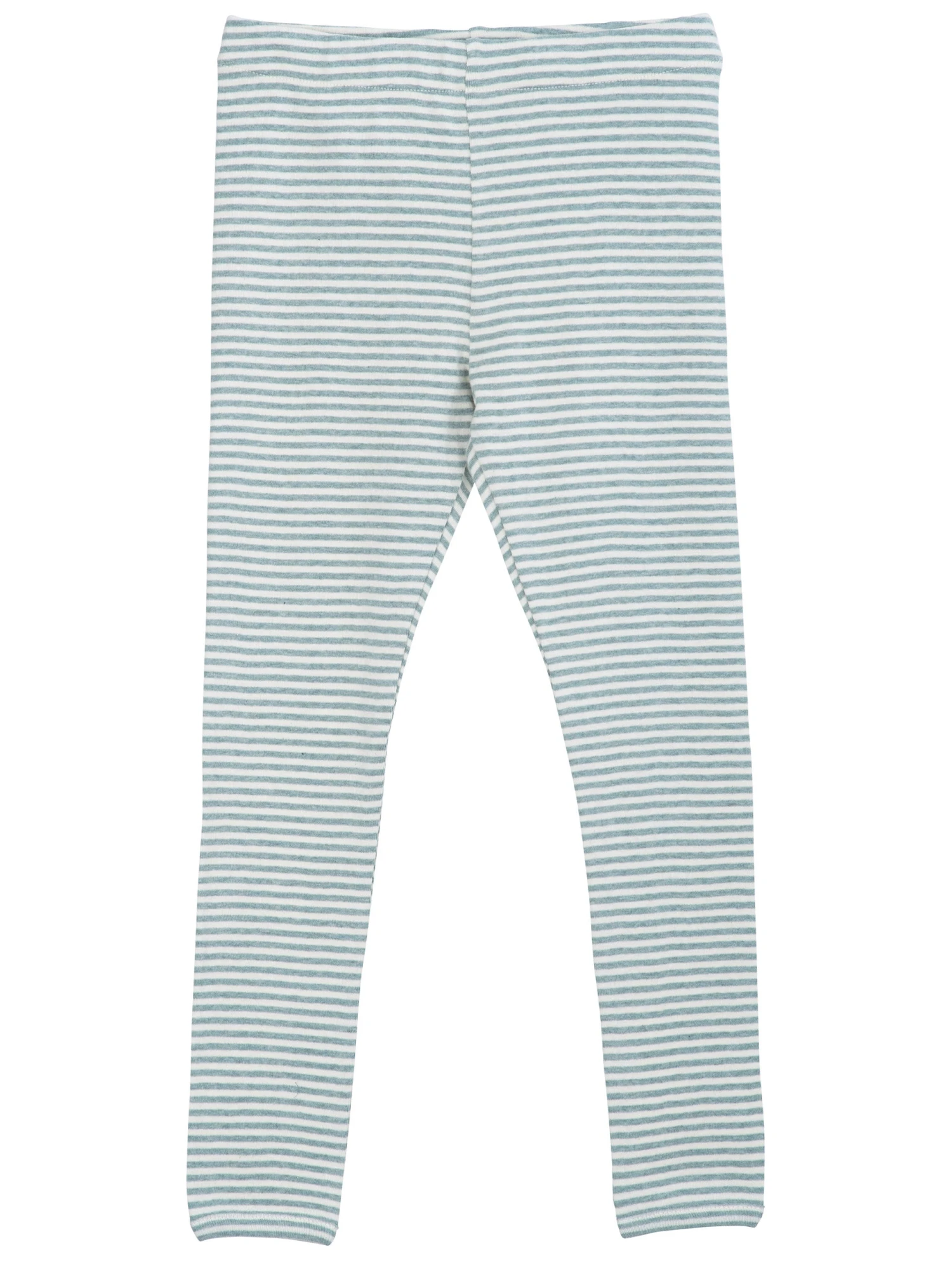 Super soft organic cotton leggings in a unisex lake and off white stripe.Â
