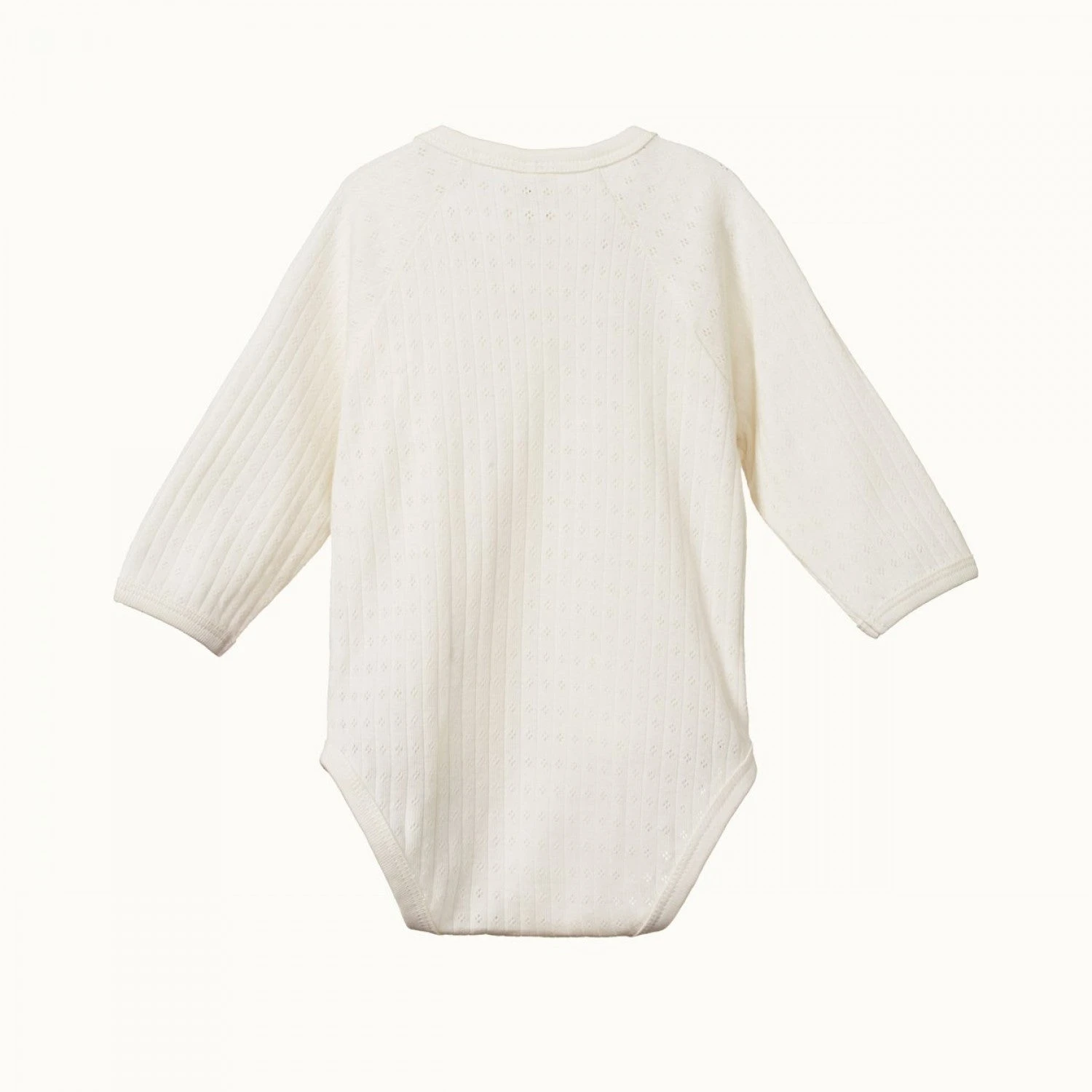 Easy to fasten with domes on the inside and outside, as well as the crotch and outside leg. Made in beautiful Pointelle fabric that’s super soft and stretchy, featuring a delicate open weave.