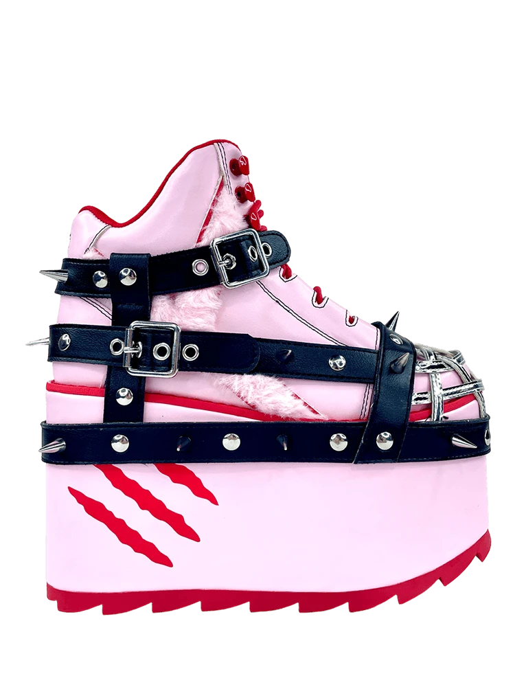 Pink vegan leather wrapped EVA bottom with red claw mark detail