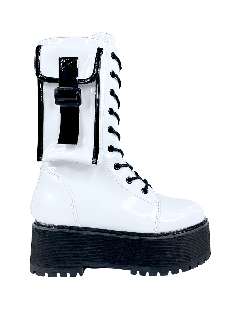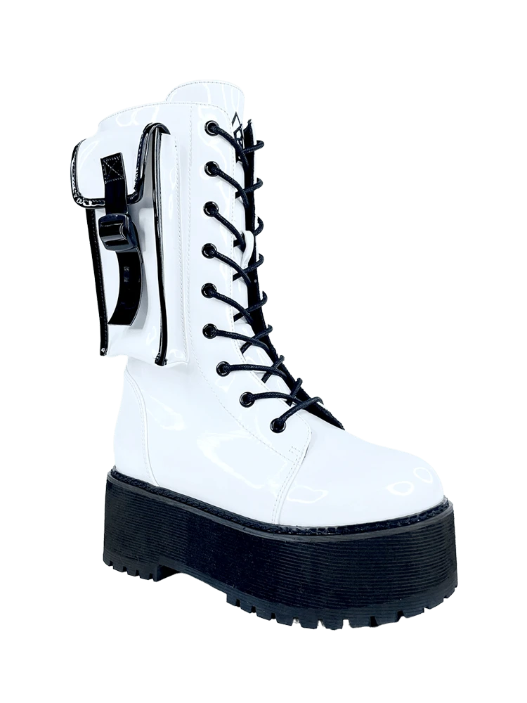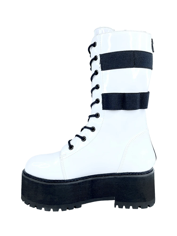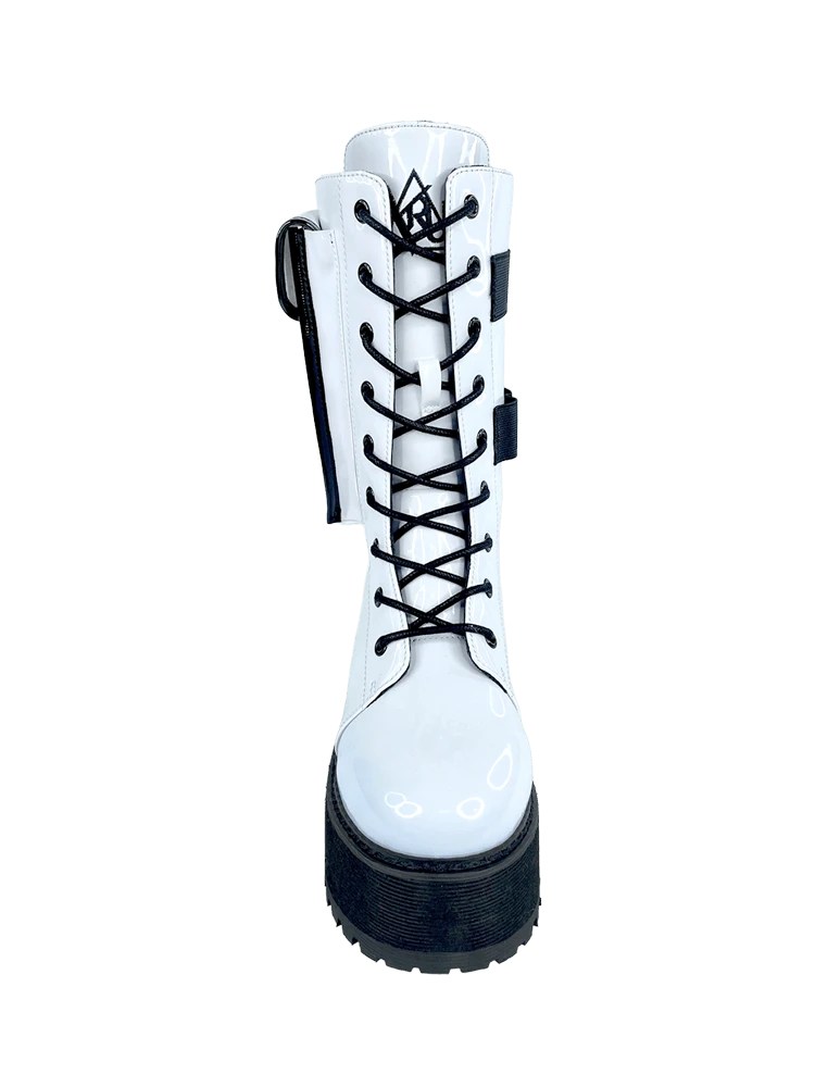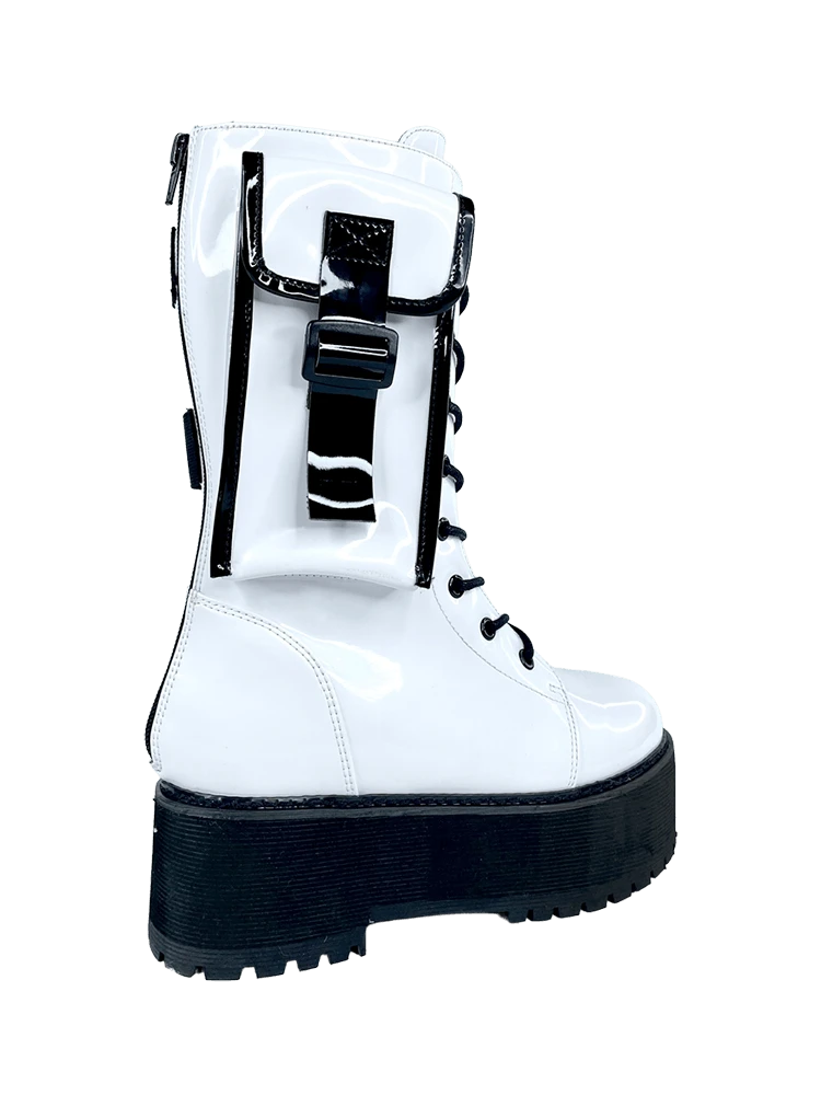 White vegan patent leather upper