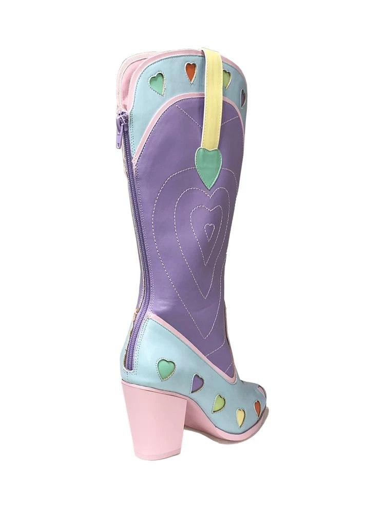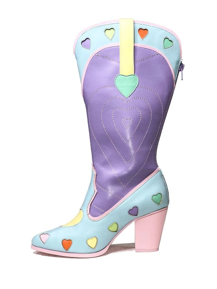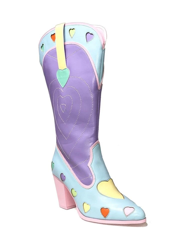 Space Cowgirls unite. Our special SC Collection features some of the most unique, deep space designs that give your cowgirl flare galactic attitude feels. The Space Cowgirl has vegan leather upper, with pink stitch detail, a 3″ heel, and back zipper.Â