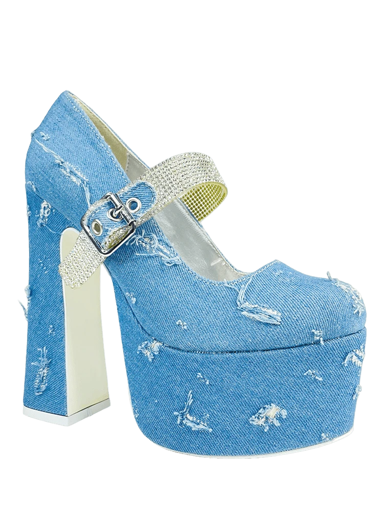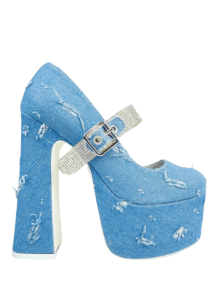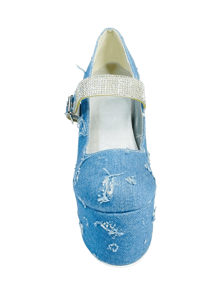 Blue distressed denim upper