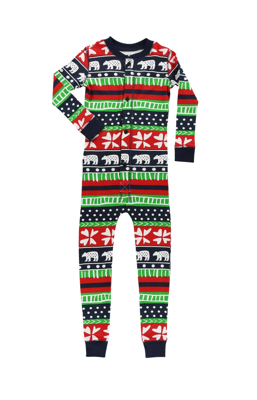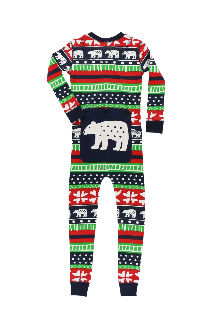 Blue, check; Red, check; Green, check.Yes our Sweater Bear Kid Onesie Flapjack has so many colors your kids will love all of them. Sweat Bear Kid Onesie Flapjacks are great for Family Matching Sweaters or Pajama sets. The decorative trap door is all sewn up for safety.